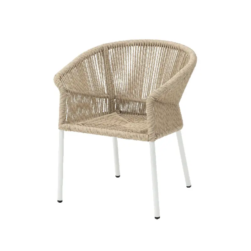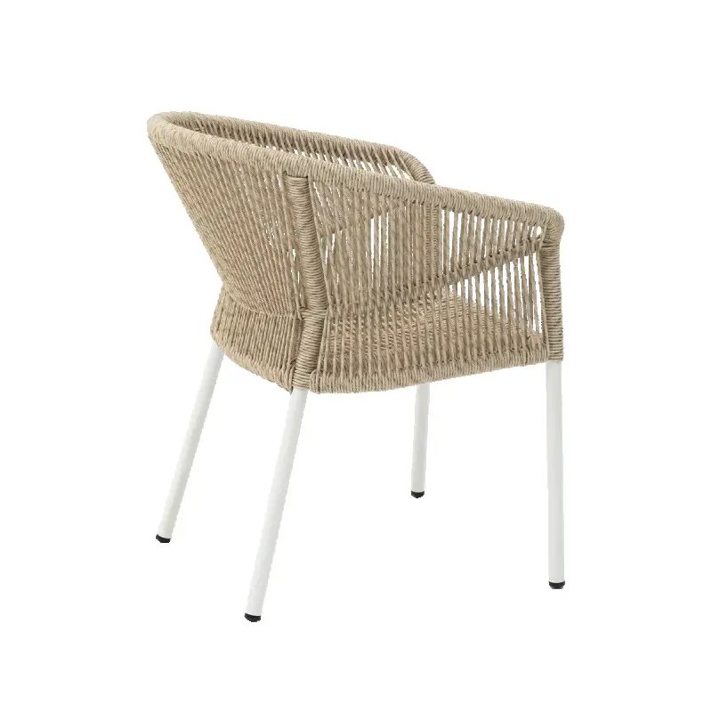 Křesílko z technoratanu ART01 má elegantní a odolnou konstrukci rámu a přirozený odstín výpletu opěradla. Díky této kombinaci je židle ideální na terasy, do zahrad, ale i do stylových interiérů restaurací a kaváren.